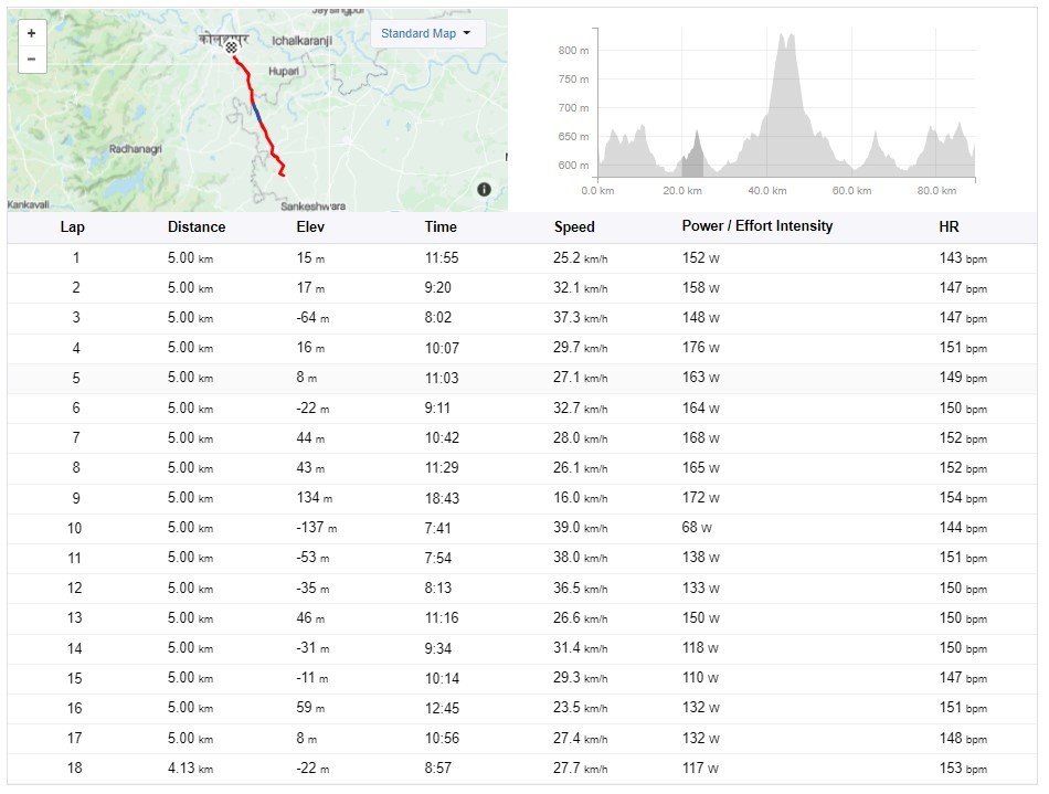 Anyway, I focused on task at hand and maintained a steady 30-32 kmph pace. The Km 42 to 45 were expectedly very steep and challenging. I kept an eye on the power reading on my garmin. The idea is not to go too hard on this and suffer later. Power reading gives a concrete reading on the effort you are putting in, no guess work needed.